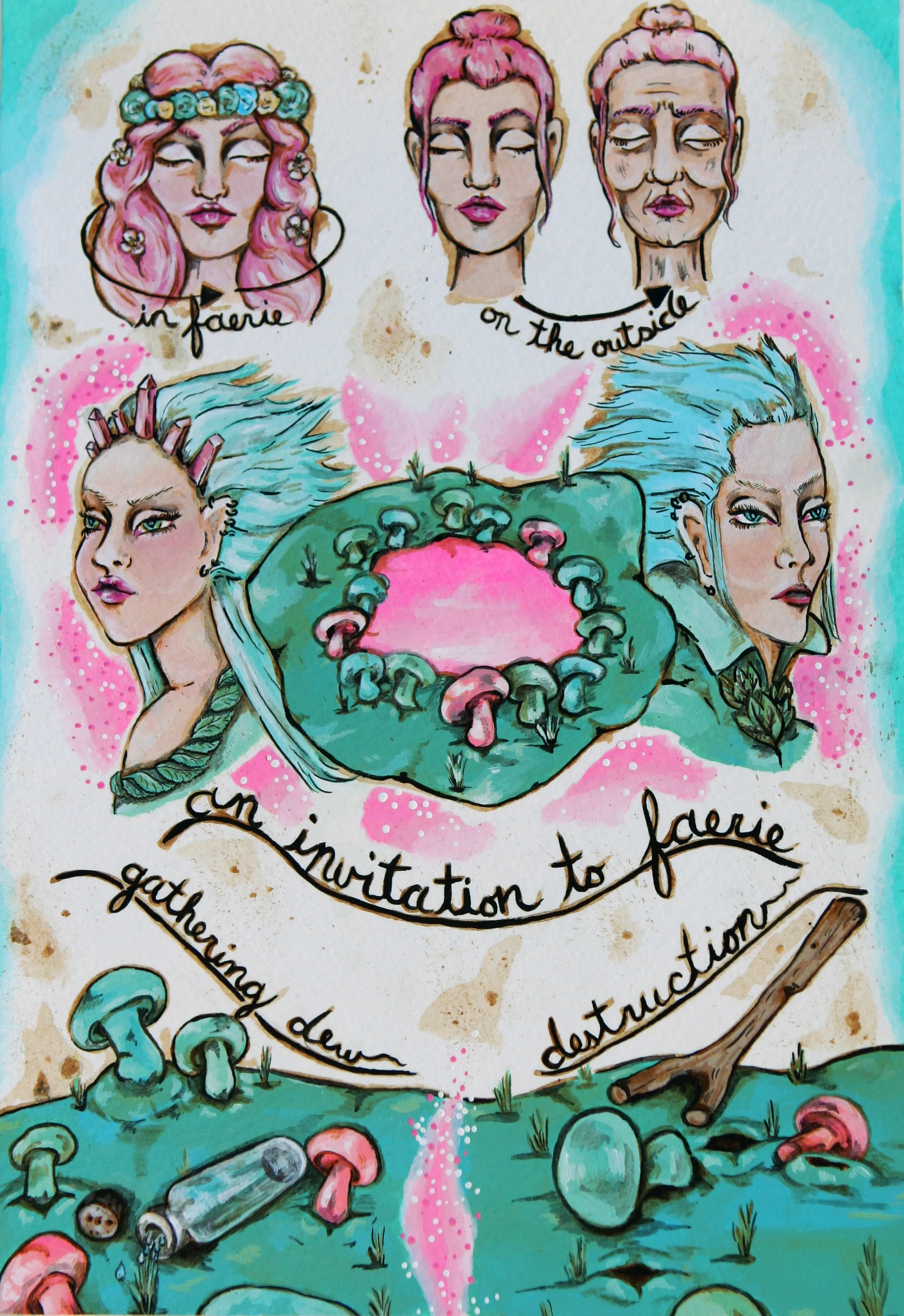 I really loved books about faeries when I was younger. Most of the books would mention faerie portals, and sometimes, the portals would be inside mushroom rings. One day, two or three mushroom rings popped up in our front yard, but I was too afraid to walk inside of them, because I knew that one day in a faerie kingdom was equal to 100 years in the real world. I was very careful around the mushrooms, and would go out early every morning to collect dew from them and keep it in a special bottle. My brother, though, wasn't as impressed by the faerie rings as I was; he and his friends destroyed them with sticks. The mushroom rings never grew back.